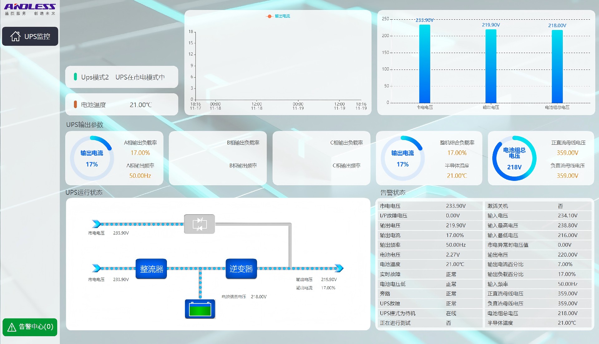 近期我司有幸為本項(xiàng)目設(shè)計(jì)了2套UPS不間斷電源系統(tǒng),包含:6KVA、20KVA UPS主機(jī)各1臺(tái)、12V100AH蓄電池64節(jié),電池柜4套,動(dòng)環(huán)監(jiān)測(cè)1套。所有設(shè)備現(xiàn)已供貨安裝完成,調(diào)試成功。
